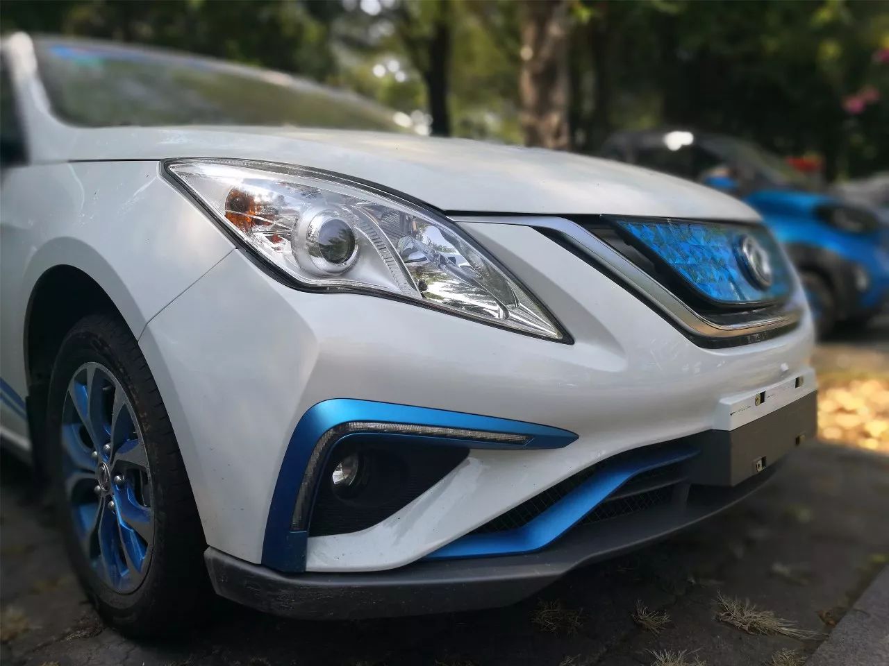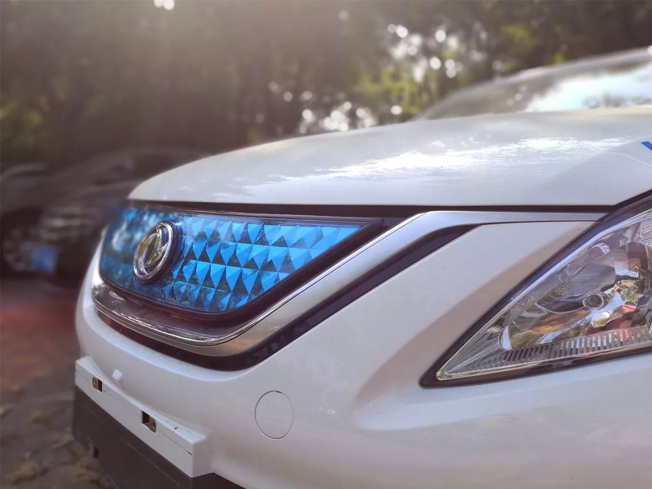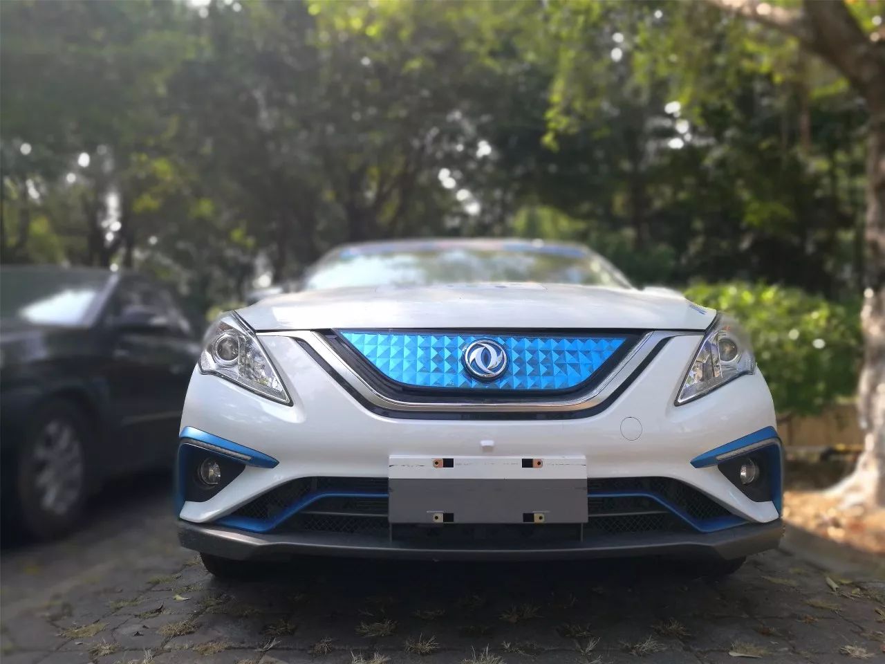 在东堤路附近的站点看到两辆白色的电动汽车,都是新车,用的是临时车牌。据了解,该电动汽车最高时速150公里/小时,续航里程可以达到255公里。