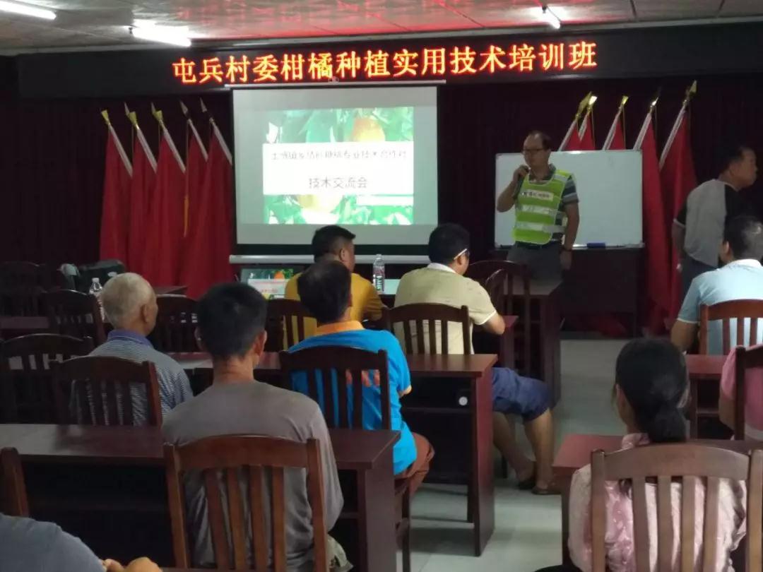 为提高屯兵村果农的种果技术和管理水平,加快水果产业发展步伐,及时解决柑橘种植户遇到的问题,9月14日,柳州市投资促进局派驻柳江区土博镇屯兵村第一书记刘伟伟牵线,在屯兵村举行2018年柑橘种植实用技术培训班,邀请到贵州、重庆等地资深柑橘种植专家进行授课,屯兵村砂糖橘合作社和沃柑合作社的种植户近40人参加培训。专家以深入浅出、贴合实际的授课方式,讲授了柑桔种植技术和当前柑桔发展主体方向、柑桔病虫害防治技术等内容。