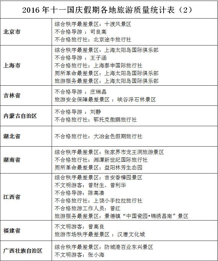 2016年十一国庆假期各地旅游质量“黑榜”↓↓↓