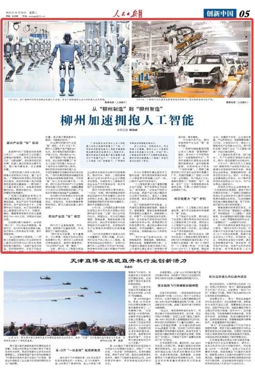 10月28日,《人民日报海外版》刊发文章《从“柳州制造”到“柳州智造”,柳州加速拥抱人工智能》,全文如下: