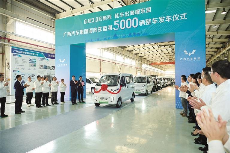 10月27日,广西汽车集团在车辆事业部总装车间举行面向东盟第5000辆整车发车仪式。一批新能源物流车、高尔夫球车、菱势黄金小卡驶向东盟市场,标志着该集团在东盟市场的布局迈入新阶段。