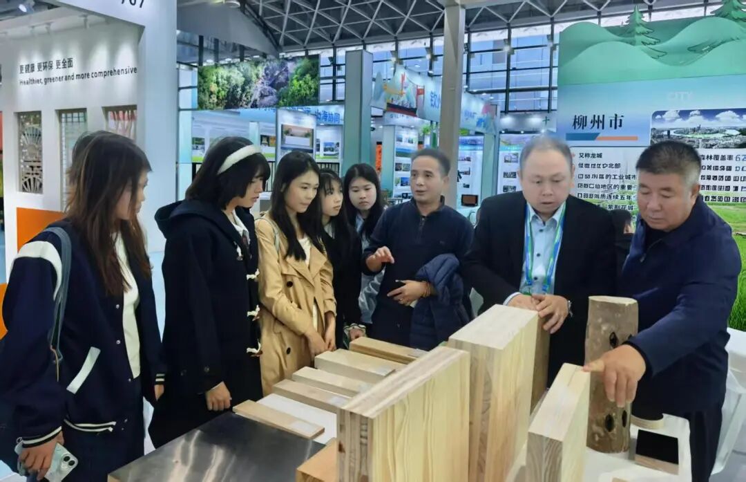 同期举办的广西国际林产品及木制品展于11月22日至24日在国际会展中心开展。我市组织30余家企业参展,全面展示其在林木业领域的最新成果。上汽通用五菱股份有限公司携“以竹代塑”新产品竹纤维汽车内饰惊艳亮相,其《汽车内饰用竹纤维复合材料制造关键技术与应用》获国际领先水平认证,相关部件将应用于20款主销车型。一家美公司展出飞鹿品牌香杉精板系列新品,包括防虫环保刨花板与可饰面刨花板;壮象木业推出饰面香杉实木生态板,嘉德木业则展示阻燃胶合板等产品。