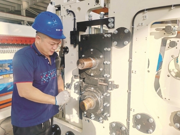 “这5台全自动抽取式面巾纸折叠机准备运往阿联酋,客户要求下个月发货,我们正在抓紧时间按照客户要求调试设备。”曾星武边说边做,眼睛紧紧盯着面前比他个头还高的设备。