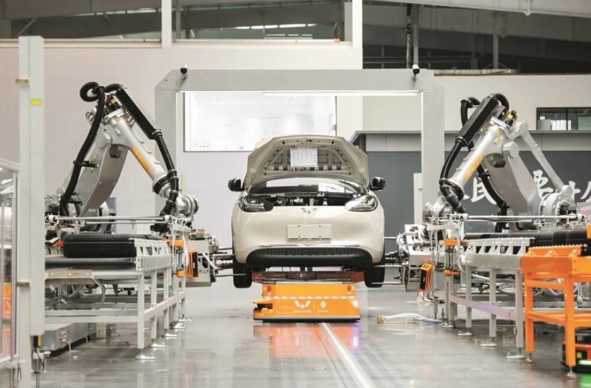 这是上汽通用五菱全球首创的智能岛制造体系(I2MS),生产智能化新能源汽车的场景。