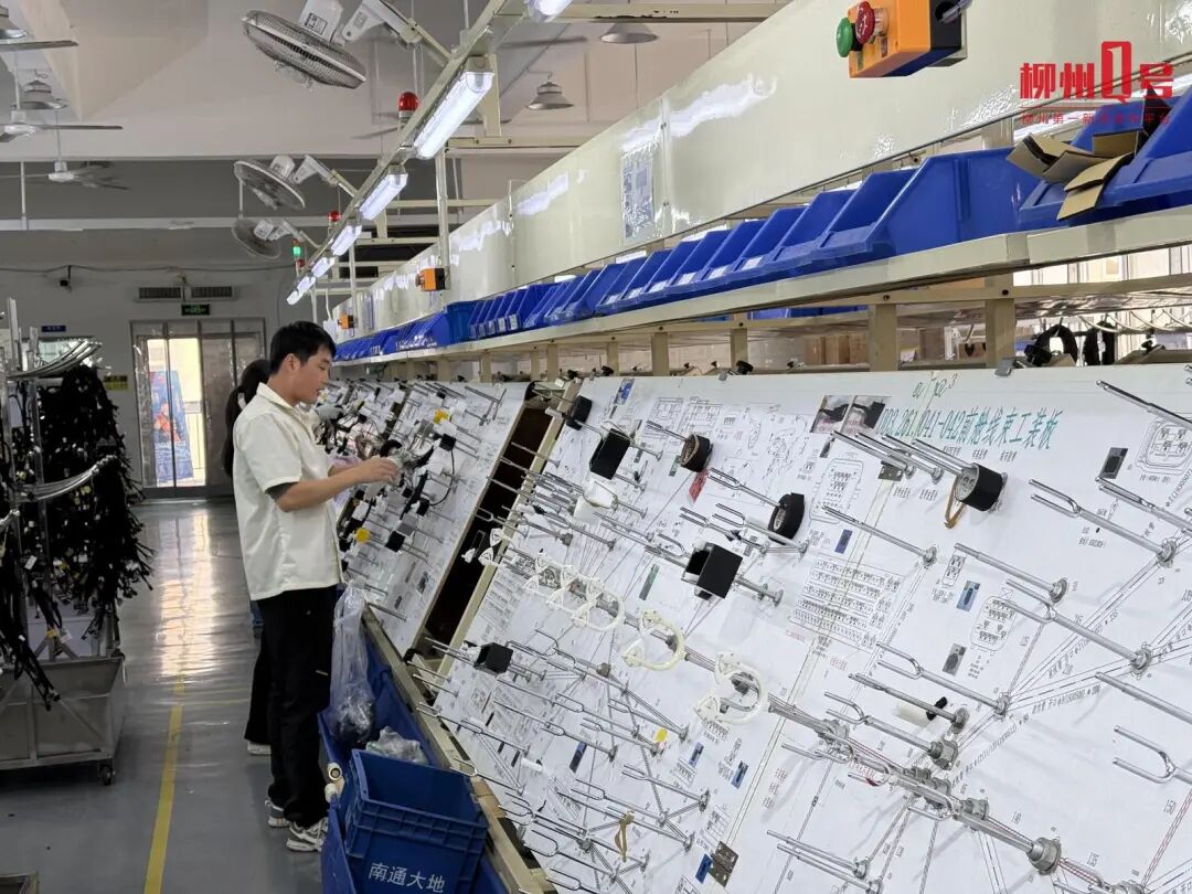 12月17日,记者走进柳州稳远电气有限公司(以下简称“稳远电气”)位于洛维工业园的生产车间,智能液晶操作台与实时跳动的数字车间管理大屏映入眼帘,生产线正全速运转。公司总经理高兵在现场告诉记者:“今年新项目落地,我们的产能直线上升,现在一个月能生产新能源电车线束8600套以上。”