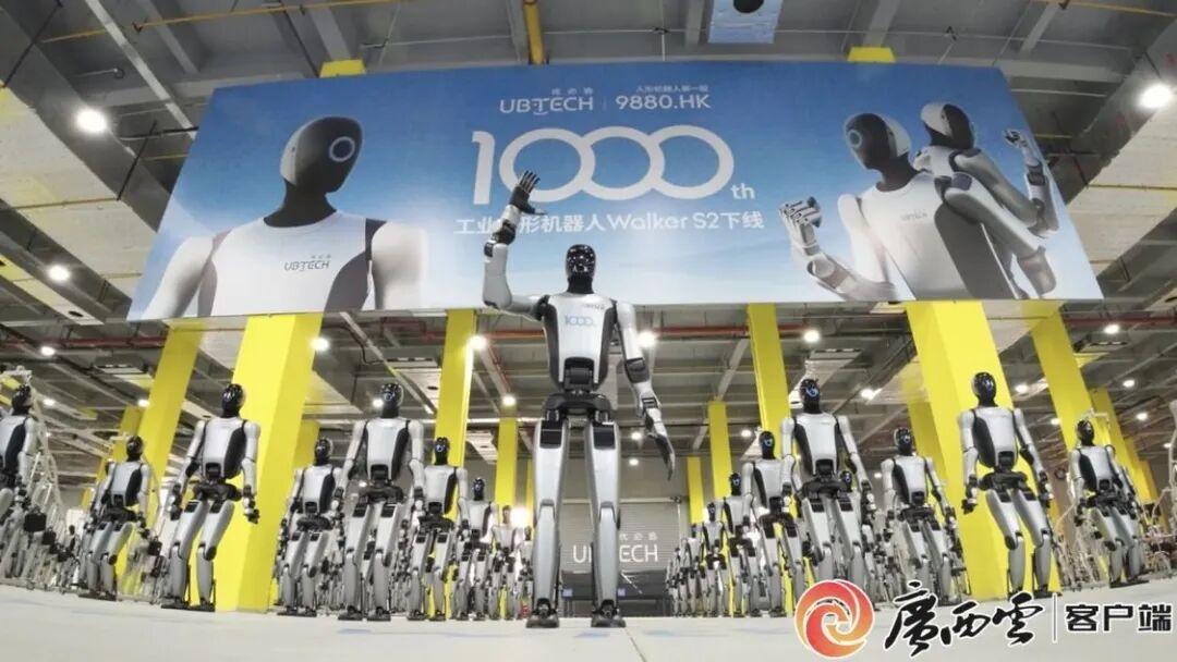 12月26日,优必选第1000台工业人形机器人Walker S2在柳州成功下线。今年6月,柳州优必选下线广西首台工业人形机器人。从第1台到第1000台,仅用了半年时间,不仅见证企业量产能力,更标志着广西在人形机器人创新发展的赛道上又迈出坚实一步。