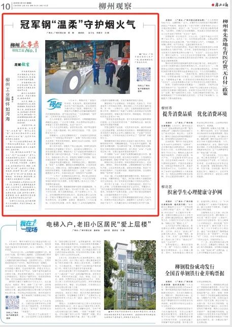 【构建“10+N”现代化工业体系】《广西日报》刊发:冠军钢“温柔”守护烟火气