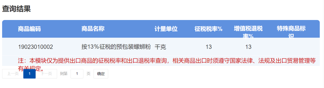 国家税务总局官网可查询到“预包装螺蛳粉”对应的编码。