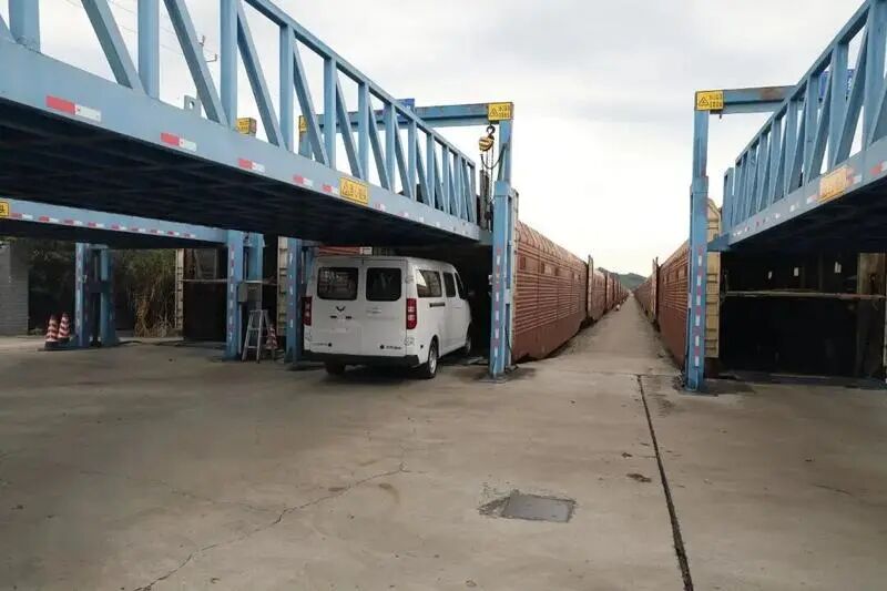汽笛长鸣,车轮滚滚。4月9日上午,柳州雒容汽车物流基地内随处可见忙碌的身影,装卸工人驾驶集装箱正面吊运起重机来回穿梭,将装有柳产汽车车架的集装箱装入火车车厢。而在铁路的另一侧,身着橘色制服的驾驶员娴熟地驾驶着柳产汽车,稳稳驶入JSQ6型双层运输汽车专用车厢。