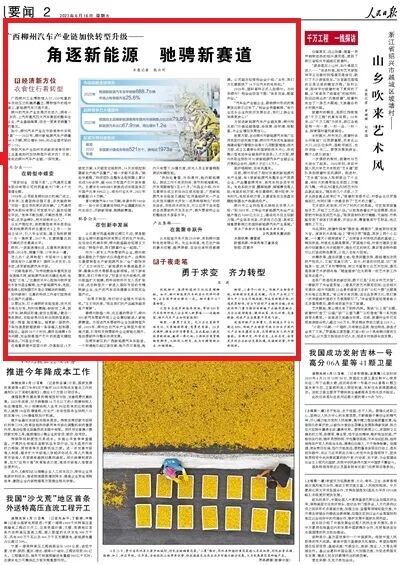 《人民日报》二版头条关注:广西柳州汽车产业链加快转型升级