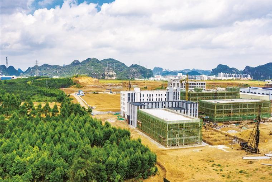 7月10日,在鱼峰区洛维工业园的柳州网驿大健康产业园项目建设现场,工人在烈日下抢工期、赶进度,一栋栋崭新的厂房拔地而起。