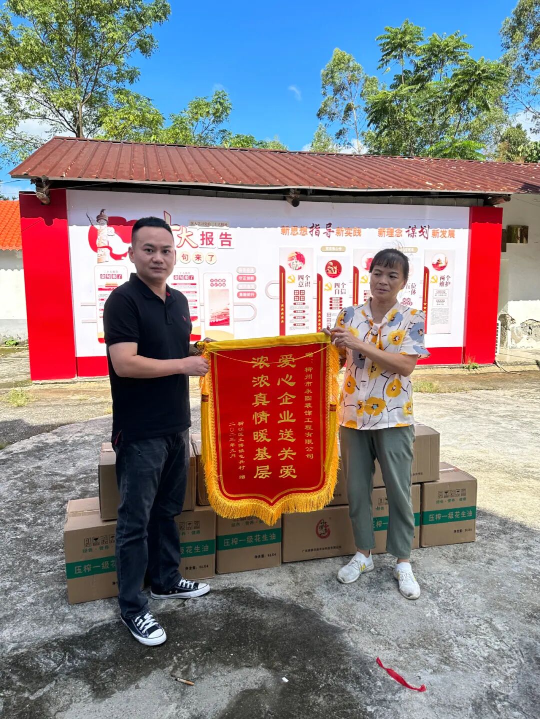 月满人间,情暖屯兵。9月19日,在一年一度的国庆节、中秋节即将来临之际,为进一步巩固拓展脱贫攻坚成果,凝聚乡村振兴帮扶力量,市投资促进局联合爱心企业,到定点帮扶村柳江区土博镇屯兵村开展2023年国庆中秋慰问活动,为脱贫户及奋战在乡村振兴一线的基层干部送去节日祝福和诚挚问候。市投资促进局副局长李茜、柳州市永固装饰工程有限公司总经理田兵及市投资促进局志愿者参加此次活动。