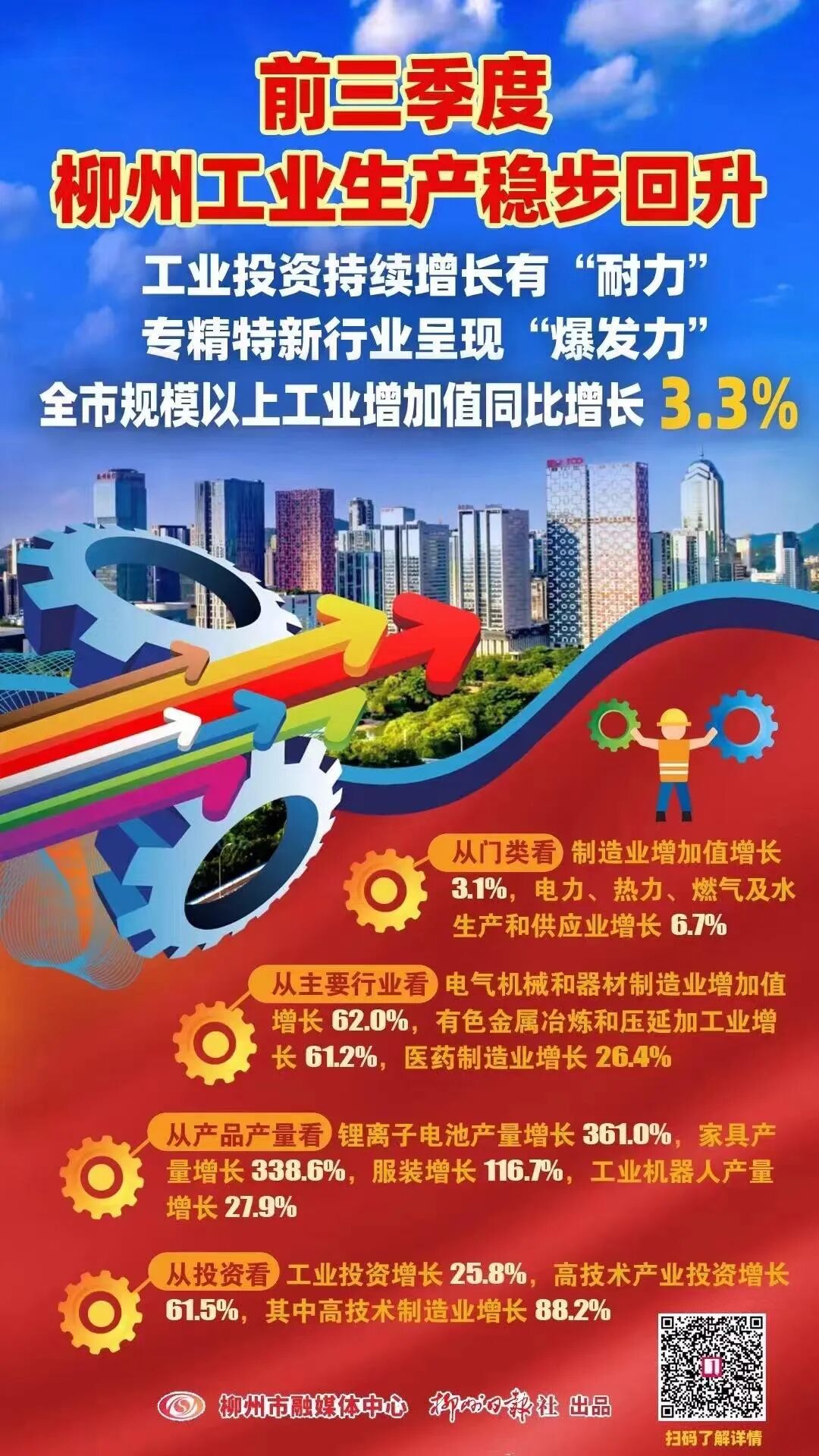 今年前三季度,全市工业投资同比增长25.8%,增速排名全区第一;此外,全市规模以上工业增加值同比增长3.3%。当前,我市工业企业在具体生产中,延续前三季度“奔跑姿态”,决战“全年红”的这股拼劲,与我市前三季度工业生产稳步回升的“成绩单”相得益彰、互为印证。