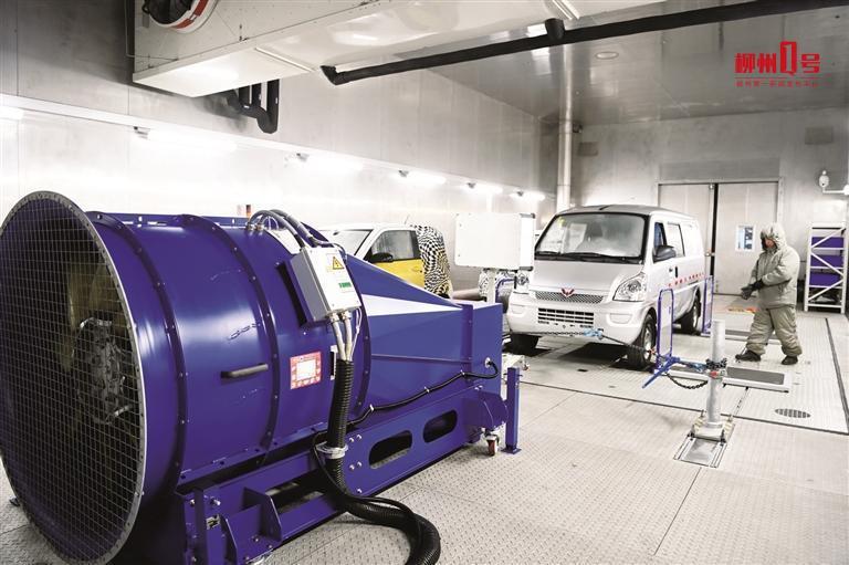 技术人员全副武装进入环境舱对汽车进行低温测试