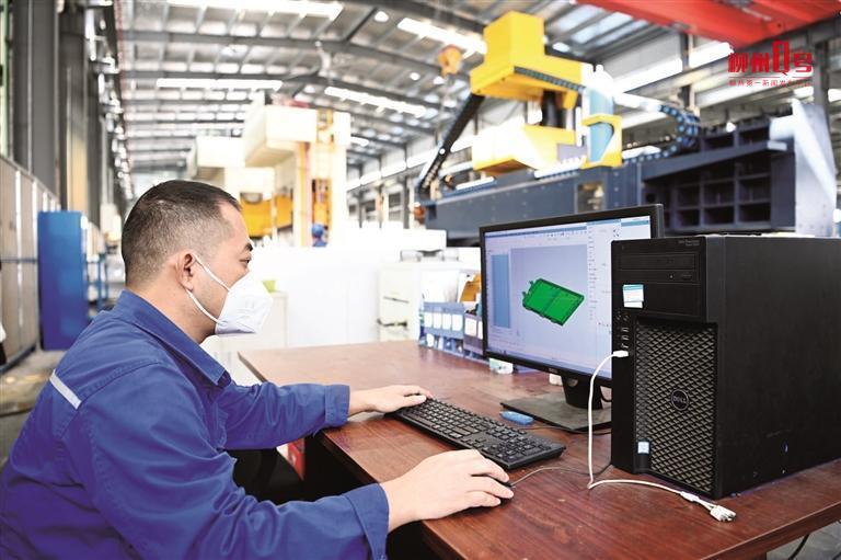 在柳东新区一家汽车零部件企业,工人在车间里设计汽车零部件。