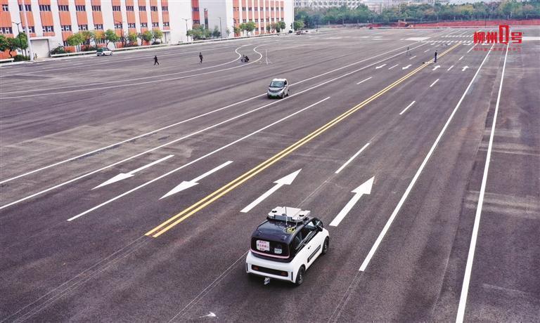 技术人员驾驶智能网联汽车在柳东新区一家汽车试验场内进行测试