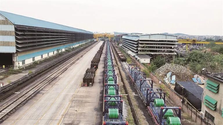 卷钢专用集装箱班列整装待发。本报通讯员 封荣权 摄