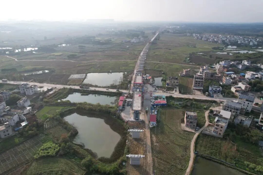 1月14日,新建柳州至广州铁路柳州至梧州段6标田寮跨柳梧平南连接线特大桥连续梁中跨顺利合龙,为完成全线主体工程建设任务打下坚实基础。