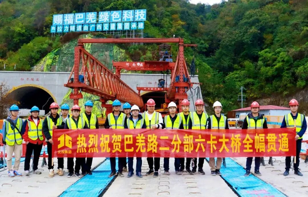 六卡大桥位于河池市巴马瑶族自治县巴马镇元吉村六卡屯,全长404.5米,全桥共3联,桥面净宽度15.25米,共需架设40米箱梁100片。为顺利推进六卡大桥建设,项目部积极对接35KV高压线路迁改事宜,密切跟踪迁改进度;优化施工组织,严格落实施工标准和技术指标,对箱梁架设、钢筋安装、混凝土浇筑等关键施工工序进行全过程监控;压实安全与质量管控责任,强化交底工作,顺利推动桥梁全幅贯通目标如期实现。