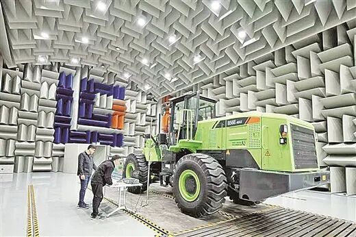 柳工半消声实验室里正在进行噪声测试。王重彬/摄