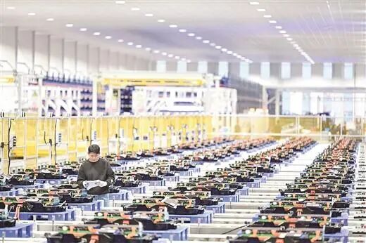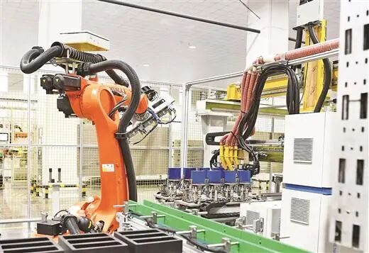 工业机器人在自动生产新能源汽车电池。石 峰/摄