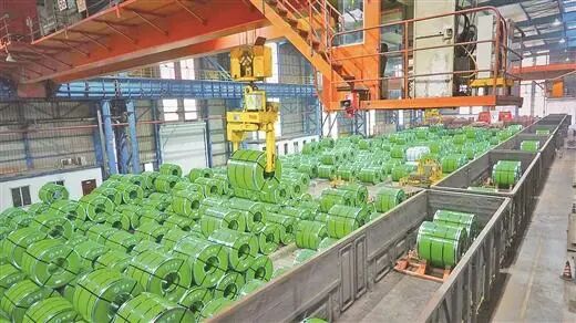 柳州钢铁行业转向新发展。图为柳钢集团即将外运的新型钢卷。潘锦才/摄