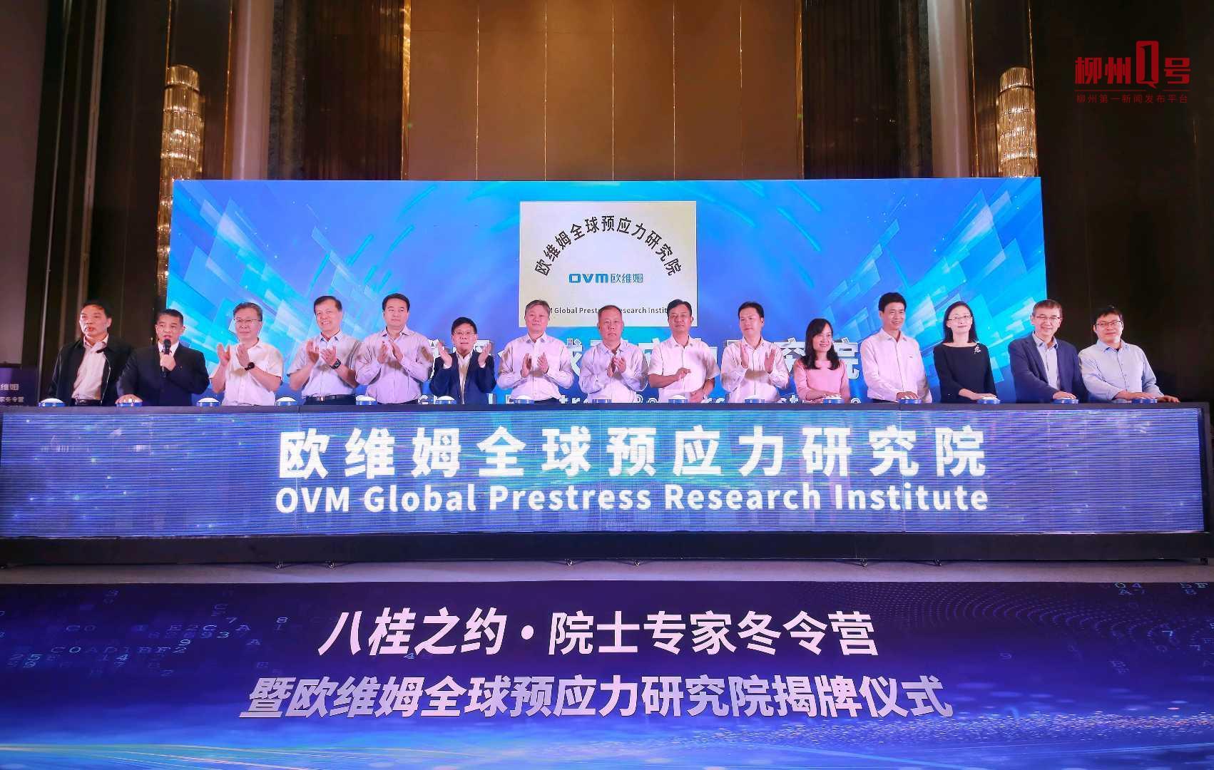 10月15日,“八桂之约·院士专家冬令营”暨欧维姆全球预应力研究院揭牌仪式在我市举行。中国工程院院士岳清瑞、曾滨应邀为欧维姆全球预应力研究院揭牌。这预示着柳州欧维姆机械股份有限公司将依托新设立的欧维姆全球预应力研究院,打造全球市场和技术应用平台,把中国技术推向世界,积极参与国际标准制定。