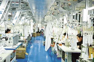 16日,记者走进位于柳北区白露工业园的广西现代服装产业园,在三六一度服装产品核心供应商柳州生产基地车间看到,吊挂自动生产线忙碌不已,一件件半成品服装整齐流转至每个车缝工位,每天下线运动装超万件。