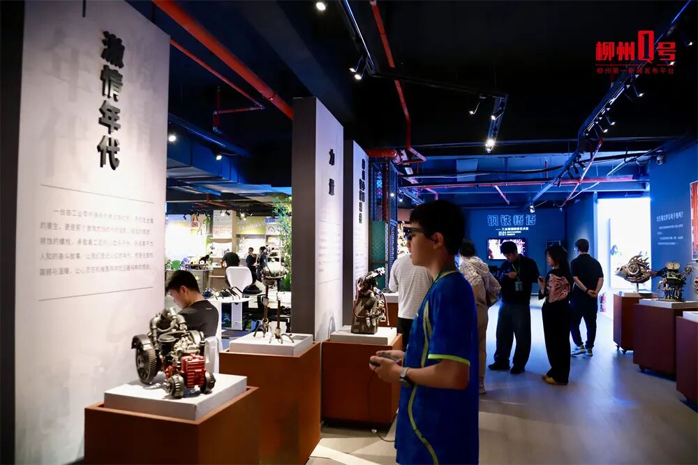 柳州人工智能工业国潮馆设置了钢铁悟语装置艺术展、艺术作品体验、AI赋能千行百业展示、福特汽车户外主题乐园、人工智能产品展示区、工匠食堂体验消费区、人工智能文创销售等,聚焦人工智能在工业制造、文创体验、文创消费等领域的实际应用,打造了一个个可互动、可参与、可感知、可体验的沉浸式场景。