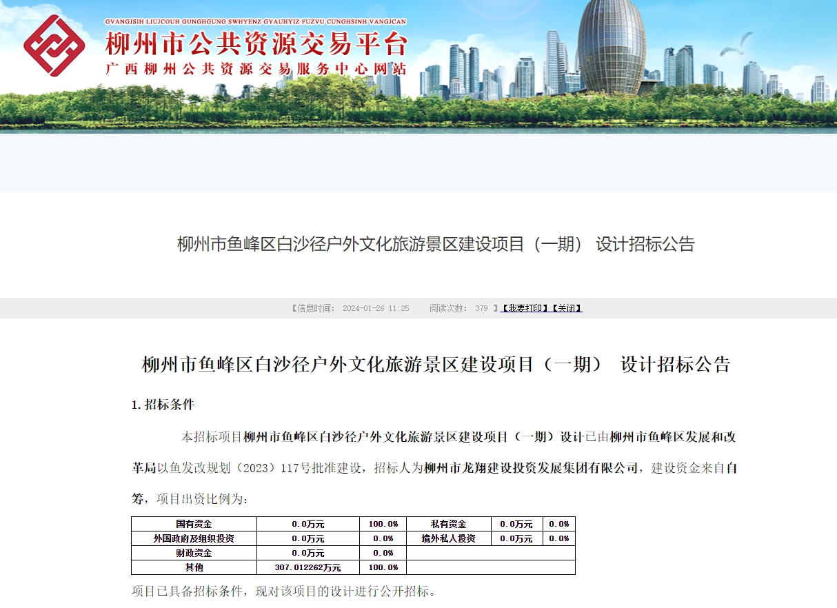 近年来,鱼峰区白沙镇因交通便利成为市民近郊出游的热门选择,还获得第三批全国乡村治理示范乡镇、第一批广西四星级乡村旅游区,并入围国家乡村振兴示范县创建名单。此次招标项目建设完成后,市民到白沙镇游玩将有更多户外项目可选择,助力全面推进乡村振兴。