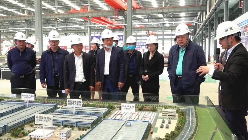 考察团走访参观了广西装配式建筑现代化产业园,广西建工轨道装配式建筑产业有限公司董事长秦元接待了考察团,并参观了装配式PC生产基地、新型墙材生产基地等生产车间。