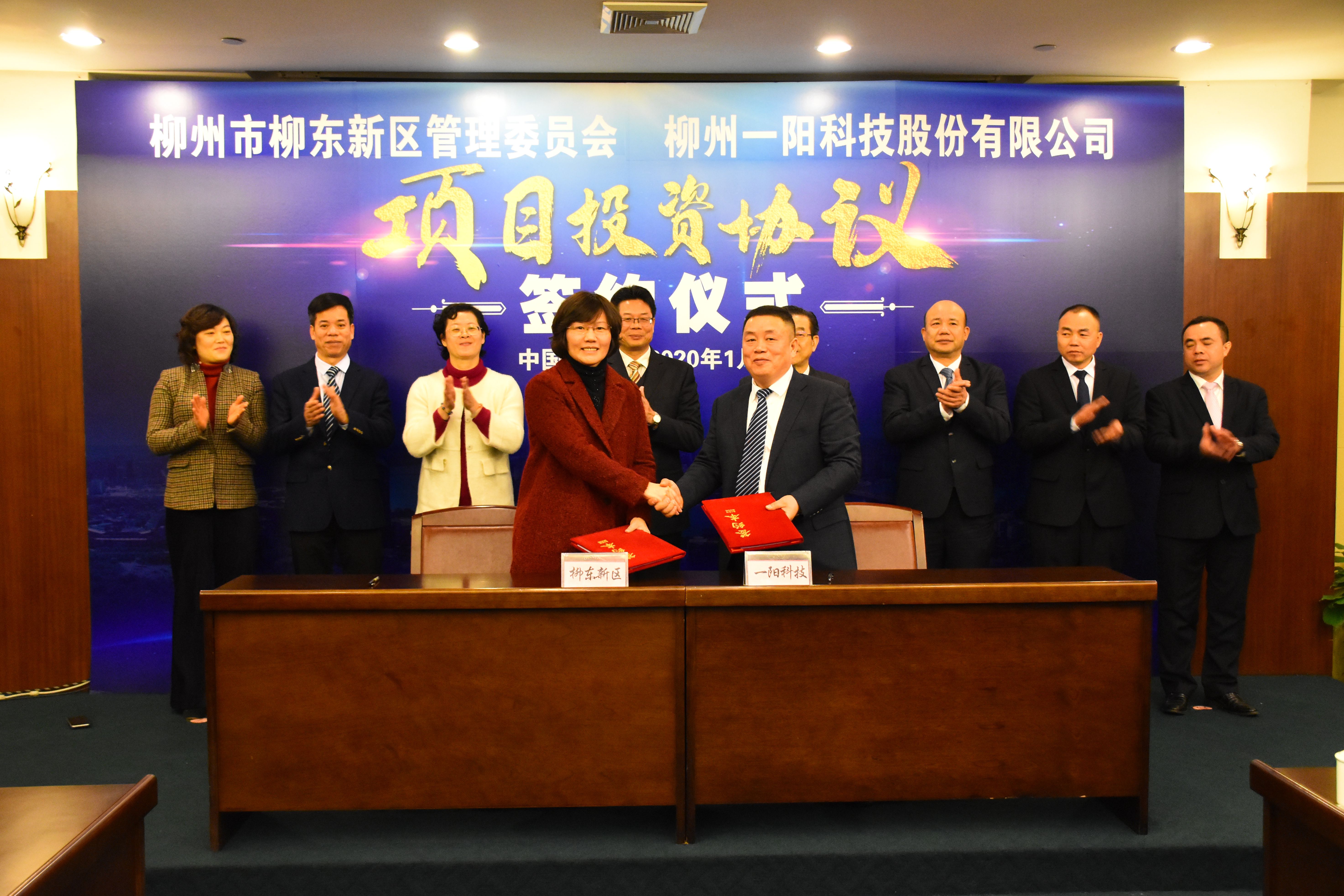1月17日,在市委副书记、柳东新区党工委书记梁旭辉,新区管委会主任何培俊,香港力劲集团董事局主席刘相尚,柳州一阳科技股份有限公司领导邓毅明等的见证下,新区管委会副主任林艳与柳州一阳科技股份有限公司总经理吴振国签订《项目投资协议》,柳州一阳科技股份有限公司年产100万台套铝铸件及100台智能装备项目正式落户柳东。
