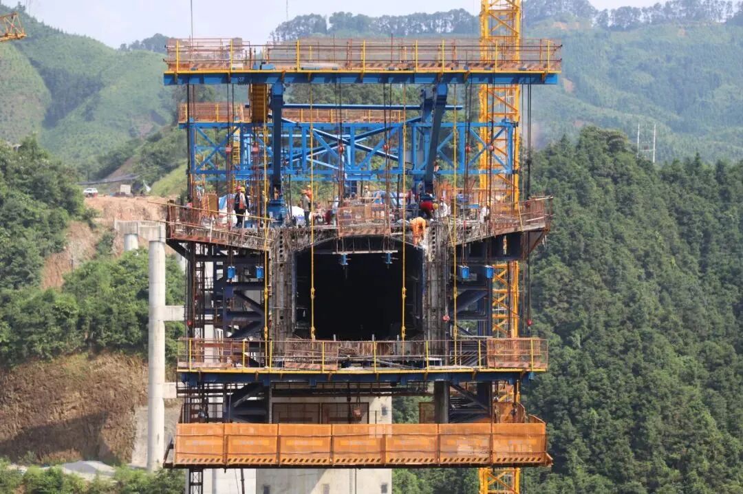 据悉,融从高速板缆2号桥位于四荣乡境内,桥梁全长493米,主桥上部结构采用(75+135+75)米连续钢构,主墩采用空心薄壁墩,最大高度58米。板缆2号桥地处山区沟谷地带,其间有溪沟发育,山坡陡峭,施工条件复杂,为全线控制性工程。